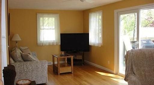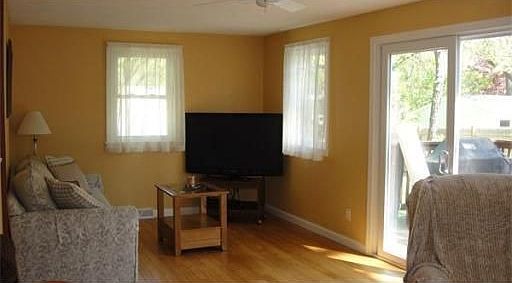 Welcome Home! Open Concept Cape! First floor completely remodeled! New Kitchen w/solid oak Cabinets, quartz counter tops, ceramic tile flr, Dining area w/Hdwd flr, front to back Living rm w/slider to cedar wood deck, full Bath w/all new fixtures. Open staircase leads to 2nd flr bedrooms w/hdwd floors. Finished Bsmt offers extra living space and potential 3rd bedroom. New roof and driveway. New Stockade Fence provides a private yard. This home makes for comfortable living and easy entertaining.