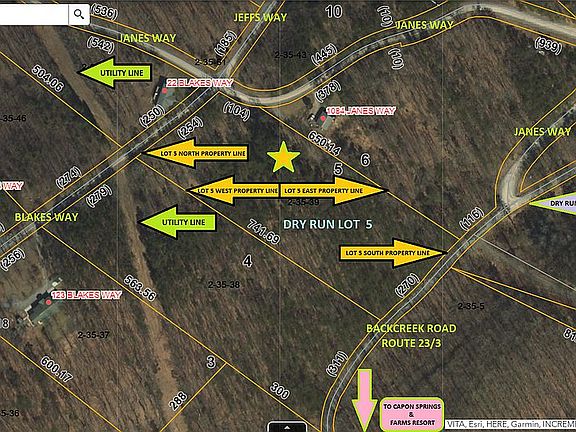SOLD! 07/2023 West Virginia's scenic Potomac Highlands, is where the hilltop community of Dry Run is located in Hampshire County. Dry Run was developed from unspoiled Ridge-and-Valley Appalachian conservation land 30 years ago. Now available is Dry Run Lot #5 - a south facing 4.4 acre corner property that that lies along the highest ridge in Dry Run. Lot #5 was originally perked okay to build the primary, secondary, or vacation residence of choice. The annual Hampshire County property taxes run around $300. The annual Property Owners Association (POA) dues run around $150 that covers Dry Run's common grounds, roads maintenance, and snow removal. Dry Run is located in between the Bhavana Monastery and the Capon Springs resort - less than 30 minutes from Winchester, VA and just 90 minutes from DC. NOTE: Please feel free to visit the property anytime at your convenience. You may tour the property solely at your own risk, and extended daily or overnight stays on the property are prohibited. Dry Run is just 25 minutes west of Winchester, VA, via Route 50 west, to Route 259 South (Carpers Pike), and to Backcreek Road (Route 23/3). It’s best to navigate with your GPS towards the nearby Bhavana Society (www.BhavanaSociety.org) that is just up the road from Dry Run. Alternatively, the property GPS coordinates are 39°09'19.1"N 78°28'18.5"W to directly navigate yourself to the property. 1) Drive westward on Backcreek Road (Route 23/3) to pass the left-hand side Bhavana Society main entrance (on Meditation Trail) and turn right after a couple of hundred yards on to the Dry Run Janes Way entrance and pass the Dry Run red mailboxes and welcome sign to drive up hilly Janes Way. 2) Turn left at the first intersection on to Blakes Way. Immediately park to tour Lot #5 (5 Blakes Way) on the left-hand side. The property's northern property boundary extends westward, in between Lot #6 (6 Blakes Way), at the corner of Janes Way/Blakes Way, and along Blakes Way to Lot #4 (4 Blakes Way) where the utility lines are located. Lot #5 is across from Lot #22 (22 Blake’s Way) on the right-hand side. At either end of the northern property boundary are parallel side property boundaries that run southwards to Backcreek Road (Route 23/3). The southern property boundary runs along Backcreek road. Please refer to the attached color image (black property boundaries w/ dimensions) while touring the property to reference the property boundaries if the original property boundary markers are not visible. Local things to do: * Enjoy the Capon Springs resort, famous for its healing natural spring waters and endless scenery * Explore the Potomac Highlands by driving along the scenic inter-county Mountain Skyway - US Route 48 * Check out the Lost River Trading Post, a long-gone railroad station turned mountain general store, features amazing hand-crafted craft goods from over 300 local artisans, crafters, woodworkers, and consigners * View breathtaking high elevation vistas at Dolly Sods Wilderness, in the Monongahela National Forest, the highest plateau east of the Mississippi River * Hike to lush Blackwater Falls and Elakala Falls natural waterfalls and scenic Lindy Point and Pendleton Point Overlook at Blackwater Falls State Park * Discover the four seasons recreational amenities at Canaan Valley nestled among the higher ranges of the Allegheny Mountains * Ride the Potomac Eagle Scenic Railroad at Wappocomo Station to enjoy the sounds of vintage diesels as they lead you through scenic pastures and farms dating back to the 1700s, as well as the visually striking gorge known as the Trough * Enjoy Winchester, VA's urban amenities including shopping/street malls, restaurants, business/professional services, and the Valley Health System's Winchester Medical Center