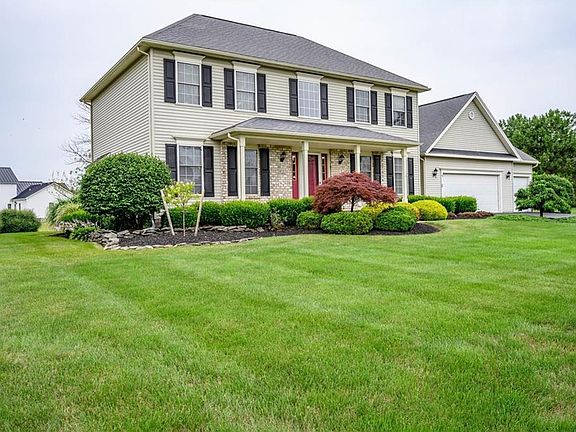 You can have it all here! This spacious 2001 built Colonial is built on a large corner lot with plenty of room for outside activites! There's shining hardwoods throughout and the huge cooks kitchen has tons of cabinet and counter space. It flows out to a fireplaced family room and formal dining room that's well lit and tastefully decorated. 4 large bedrooms occupy the second floor. The master has a spacious walk-in closet and in inviting master bedroom bath! All the rooms are large and well lit with lots of closet space! There is a very large deck that's perfect or entertaining and surrounds an above ground pool! The 3 car garage has built in storage AND a sunroom at the back! There's also an overhead door at the back of the garage to an attached shed. There's a finished basement for additonal living space, man cave, or entertainment room. Greenlight high speed internet is being installed in the subdivision now! Delayed showings to 7/25 @ 2pm.