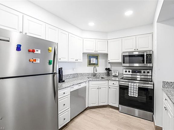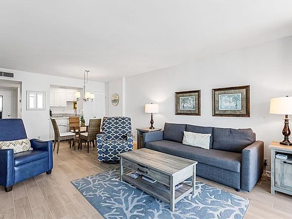 This beautifully updated condo in Vanderbilt Towers at 5 Bluebill Ave offers a delightful and comfortable vacation destination on the 8th floor. The one-bedroom, one-bath unit features wood-look tile flooring throughout and has been freshly painted, creating a modern and inviting ambiance. The kitchen and bathroom are both updated with elegant granite countertops, enhancing the overall aesthetic. The bedroom is equipped with two full-sized beds and a convenient dressing room with a sink situated between the bedroom and bathroom. Tastefully decorated and very cozy, this condo provides a perfect retreat. The gated community boasts a lovely community pool for residents, tenants, and guests, and the on-site manager's office on the first floor ensures assistance is readily available. Enjoy the close proximity to all the wonderful amenities that Naples has to offer.