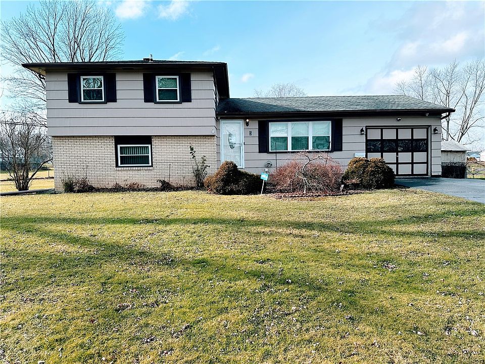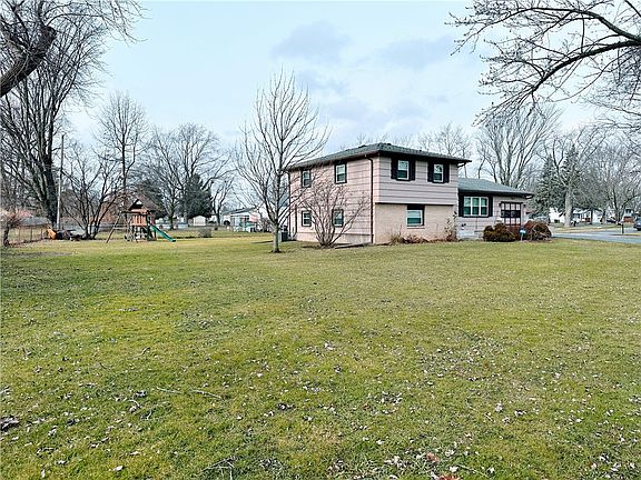 Spectacular 4-level split in the heart of Gates-Chili School District! Inviting entry opens to a spacious well-lit living room. Updated kitchen with breakfast bar has tastefully designed wooden cabinets with attractive custom tile splash and ceramic floor, and a light-and-bright dining area with updated sliding glass door. Contemporary remodeled main bath has newer vanity and toilet, with custom tile shower surround. Cozy lower level family room makes a great spot for a kids play area, home office, or gaming room. Gorgeous oak hardwood flooring throughout was just refinished. Bonus whole home generator and transfer switch included. Garage has convenient shop area with custom-built tool bench and storage racks. Full basement offers plenty of additional space for storage. Other updates include '14 high eff furnace with ac, '14 hot water tank, and '14 vinyl thermopane windows throughout. Delayed negotiations until Mon 1/22 @6pm.