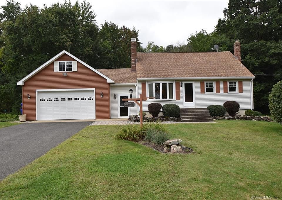 Welcome to 5 Bowles Road! You won't want to miss this the opportunity to own this impeccably maintained Cape Cod styled house situated on a level lot with a beautiful landscaped yard. The kitchen has been renovated and boasts new cabinets, granite countertops, tiled backsplash, stainless steel appliances and granite center island open to the dining area with a fireplace. There is a renovated full size bathroom , a home office and a sunlit family room looking over the backyard and is the perfect room for relaxing with a good book or entertaining guests. The primary Bedroom with hardwood floors completes the first floor. On the upper level you will find two generous sized bedrooms. The lower level has a partially finished basement with an additional fireplace and a full-sized Bathroom. The Mudroom is surrounded by beautiful woodwork and leads to the kitchen, garage or the backyard. The oversized two car garage has ample storage, and the upper level could be easily made into an additional, office, exercise room or craft room. There are newer vinyl windows throughout and 4 mini-split units to keep you cool on those hot summer days. Great location near the Ellington Line and UCONN. This is a gem of a house where memories can be made! There is an additional 368 ft which is currently being updated by the Assessor's Office and not reflected in the total sq. footage.