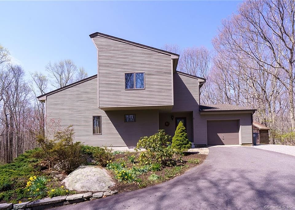 Rarely found trendy passive solar Contemporary situated on 6.45 acres surrounded by woodlands in sought after NIANTIC,a seaside enclave of EAST LYME. Meticulously maintained with attention to detail is evident throughout. Gorgeous custom HECHT cabinetry is featured in both the kitchen&bathrooms. The ever popular "open concept" floor plan is ideal for large scale entertaining both inside and out. Experience the breathtaking GREAT ROOM with soaring ceilings &2 story"wall of windows" flanked by a dramatic floor to ceiling fireplace with locally sourced stonework.Gorgeous views of the natural setting as you dine, relax or entertain.Informal dining area can accommodate a dozen.Experience nature at it's best during all the seasons from almost every room in the home.Custom sunshades to utilize the passive solar design efficiently. The relaxing family room is open to the kitchen providing comfortable area for watching TV or reading. Breakfast bar for informal dining plus room for a bistro table.Convenient 1st flr full bathroom has extra space for future washer/dryer hookup or utility/pantry closet.Large mud room area as you walk into the home.Take the stairs up to the sleeping quarters featuring a "minimalist" remodeled bath with double sinks.Generous sized bedrooms w/ample closet space. Need storage?Walkout unfinished lower level + 3 garages.Love the outdoors?This yard is your playground! Hike to your hearts content!Ideal setting for solar panels for those who desire a "GREEN HOME"