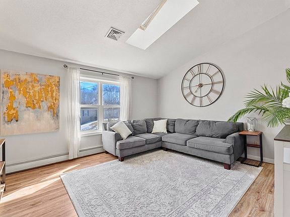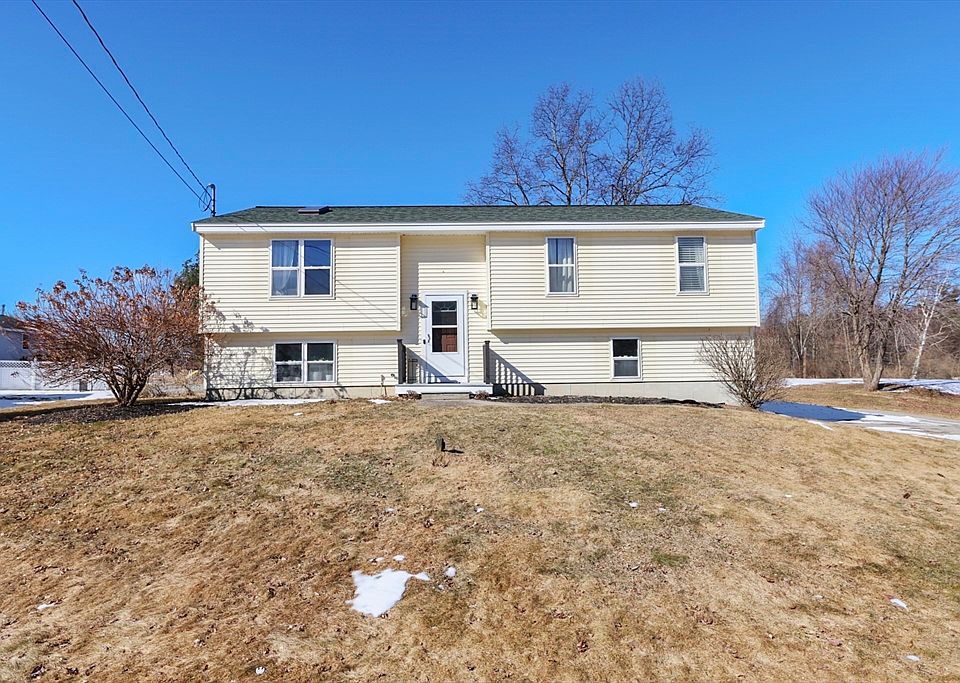 Welcome home! This 3-bedroom, 2-bathroom split-level home is nestled on a large lot in East Kingston, NH! As you enter into the main level, you're greeted by the inviting living room w/ high ceilings & a skylight, filling the space w/ sunlight. The adjacent kitchen is a chef's delight, complete with granite countertops, stainless steel appliances, and beautiful white cabinets. It seamlessly opens up to the dining area, which offers slider access to newly carpeted sunroom overlooking to backyard. This level also hosts 3 bedrooms, each offering ample closet space & new flooring. A full bathroom w/ a granite vanity & shower/tub is just off the hallway. Downstairs, you'll find additional living space with a family room and 2nd full bathroom featuring washer/dryer hookups. Convenient interior access to the 2-car garage. With central AC throughout, you'll stay cool and comfortable all year round, no matter the season! Don't miss out on the opportunity to make this wonderful home yours!
