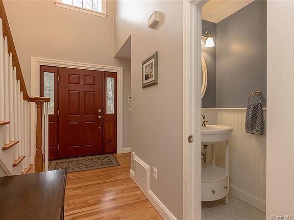 This beautiful center hall colonial sits perfectly on its 1 acre level lot. It offers a spacious open floor plan with an eat-in-kitchen that opens to a Great Room with sitting area and fireplace. Relax in your gorgeous family room with cathedral ceiling and french doors opening to a large deck that overlooks your private back yard! A main level office with full bath could also be used as a private guest room. Formal Dining Room and Living Room plus a laundry room convienient to the kitchen and a 1/2 bath round out the main level. The second floor offers a large master bedroom with cathedral ceiling, walk-in closet and updated master bath, along with three additional bedrooms and another updated full bath. The recently finished walk out lower level adds almost 700 sq feet of living space with builtins, a cozy reading nook, and french doors leading to a patio and large, open backyard. A mud room area is accessed as you enter the home from your 2 car attached garage. Located in the Cranbury section of town, on the Westport and Wilton town lines this home is conveniently located for commuters with easy access to Merritt Parkway, I-95 and Metro North. This home is a must see.