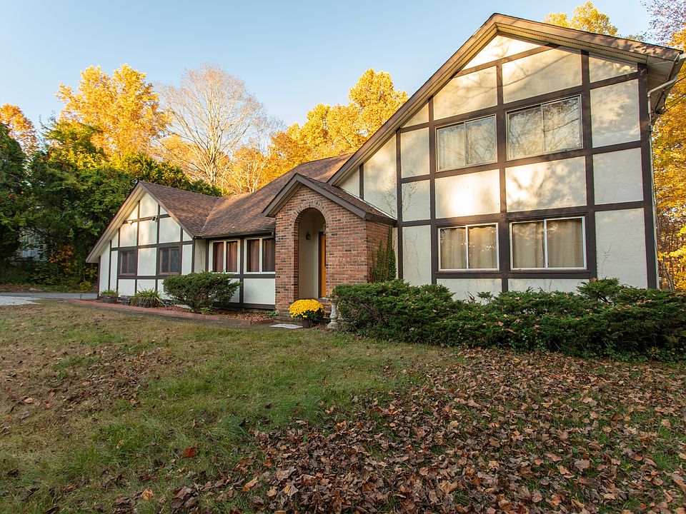 Move right into this spacious contemporary Tudor built in 1986 and situated on .72 acres. The layout maximizes the interior space featuring hardwood floors with inlay. You will find a nice flow when walking throughout the house. It's located in a quiet, family-friendly neighborhood just a few minutes from I395 and many retail shopping outlets and restaurants. There are two world-class casinos close by for your entertainment. You will appreciate features like the Living Room with a gas fireplace and wood vaulted ceiling, a cozy Family Room, formal Dining Room, and Large Eat-in Kitchen (20'x14') with a patio sliding door leading to a tiered deck that encloses a 32' oval above ground swimming pool. Take the Grand Stairway upstairs where you will find the Primary Bedroom with its own full bath (Jacuzzi), shower, and double sink vanity in addition to two comfortable bedrooms. Enjoy ease of access and storage with a two-car attached garage. A full walkout basement with a partially finished heated area provides additional space featuring French doors leading to a large back yard for a look at nature. Stay cool in the summer and warm in the winter with Central Air / Heat Furnace installed 9/2022