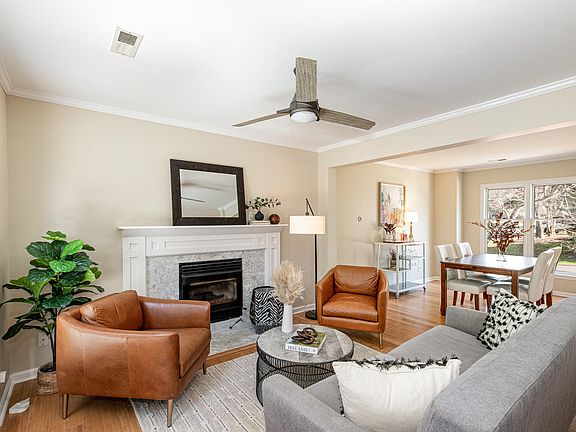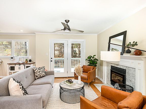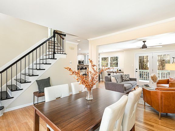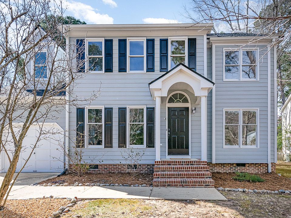 This stunning 4 bedroom home in wonderful Woodlake is completely move in ready. Light and bright with freshly painted interior. The open floor plan seamlessly flows from kitchen to living room and dining room all with beautiful bamboo floors. The kitchen boasts stainless steel appliances, tile backsplash and granite countertops with ample bar seating. Working from home? The first floor office with built in bookshelves is the perfect workspace. Step out onto your oversized deck and into the huge, flat and fenced in backyard. Look past the 3 raised garden beds and fire pit - and yes, that is the paved Woodlake walking trail in the woods behind the house! Upstairs has 4 bedrooms, one of which would be a great bonus room. The large primary bedroom has vaulted ceiling and large walk in closet along with dual vanities. Brand new roof was installed 2024, new heat pump with air handler in 2019. Did I forget to mention the attached garage or the tankless hot water heater? Super convenient to Durham, Chapel Hill, RTP and I-40. And just a short walk to the clubhouse, pool, playground, lake and Piney Wood park (Dog parks, tennis courts and Durham's nicest pickle ball courts!)
