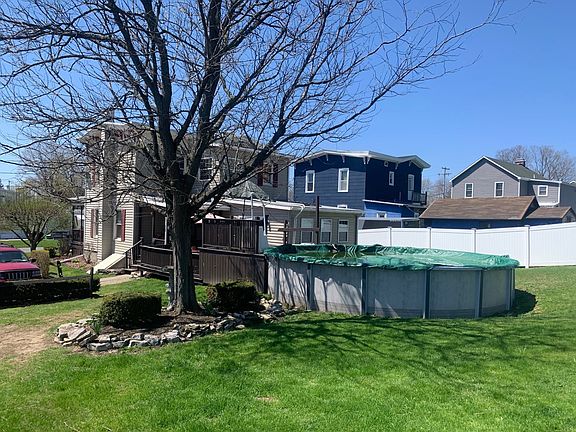 Great condition 1887 Victorian home set on a quiet side street. Home has an updated kitchen with tile floor and appliances, formal dining room, living room and family room in the back of the house with sliding glass doors that go out to the pool area. 4 bedrooms on the 2nd floor, 1 1/2 bathrooms, (one on each floor), 1st floor laundry, and a pull down attic on the 2nd floor. Outside there is a great back yard with a deck that leads to an above ground pool, an open front porch, an amazing heated 2++ car garage that can actually store 4 cars and has a work shop area. This house won't last long, so don't wait to call for your private showing!