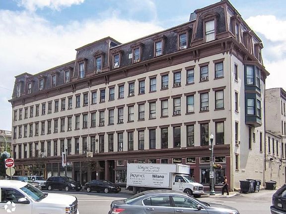 The Cannon Building in Troy, New York is located on Broadway between First and State streets. It is the oldest building on Monument Square. It was designed by Alexander Jackson Davis and built in 1835. In 1970 it was listed on the National Register of Historic Places.The apartment has HVAC system, Bluetooth sound system in a ceramic tiled bathroom, all stainless steel appliances including a dishwasher and microwave, and wood pocket doors in an eat-in kitchen. The building has elevator service and a coin-operated laundry room, internet service is included otherwise tenant pays for utilities. The owner pays for the internet. The tenant pays for utilities. Pets allowed. No smoking. Street parking only.