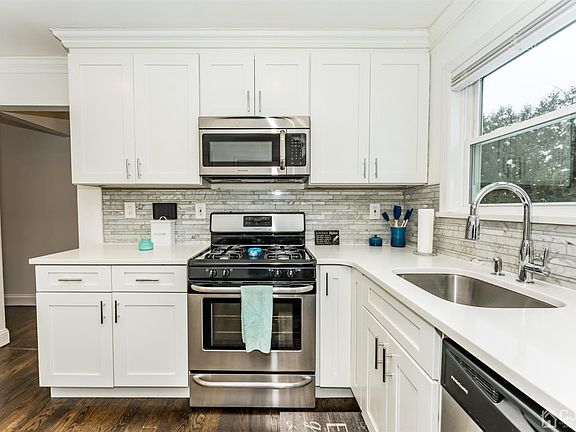 This stunning 4 BR 2 Bath colonial has everything you want & need. Move in ready w/plenty of features, you won't be disappointed! Step right in to find stylish & modern designs all through. Deep stained HW flrs are gorgeous & expand through the main lvl. LR w/Bay Window soaks the room w/sun. DR is airy & open w/a pass through to the EIK. Both w/trendy crown molding that adds great character to the home. Newer Kitchen is so chic! Crown molding here, too + rec. lights, SS Appl., quartz counters, Carrara marble backsplash & sleek countertops & cabinetry. Updated full bath is filled w/contemporary charm. Herringbone Carrara marble, honeycomb flring & spacious shower. Main BR on the 2nd lvl is a really great size. Addtl BRs, too! 2nd Full bath also boasts elegance. Full bsmnt is the perfect Rec Space. There is a huge fenced in yard & enclosed porch that is perfect for outdoor entertaining! Roof is only 6 yrs. Replaced sump pump. Brand new HVAC & furnace. Amazing location-THE LIST GOES ON!