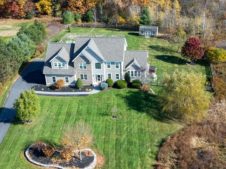 Exceptional residence in desirable Abenaqui Meadows subdivision sited on 3.1 acres abutting 50+ acres of conservation land. Boasting over 3,500 square feet consisting of 9ft ceilings on both the 1st and 2nd levels, 4 bedrooms, 5 baths and finished lower level with family room gym. Enjoy the beautiful open concept Chef’s kitchen, breakfast nook and living room with terrific light. Chef’s kitchen features custom cabinetry, granite center island with seating, high end appliances, wine bar and walk in pantry. Breakfast nook is perfect for additional gathering space and provides access to the new deck overlooking the private backyard. Relax in the comfortable living room offering a cathedral ceiling, great windows and gas fireplace with stone stacked façade. Main living level also includes a dining room, office and ½ bath. Upstairs, the primary bedroom suite includes a large walk in closet, oversized walk in shower with body sprays, double sinks and double vanities. The 2nd bedroom with ensuite bath is perfect for guests! The 3rd and 4th bedrooms, laundry room plus a full bath complete the 2nd level. Finished lower level consists of a family room, gym, ½ bath, storage area and walk out to backyard. 3 car garage, mature landscaping, shed and partial fenced in backyard. Beautiful country setting yet conveniently close to shopping, highways and the beaches. Move right in!