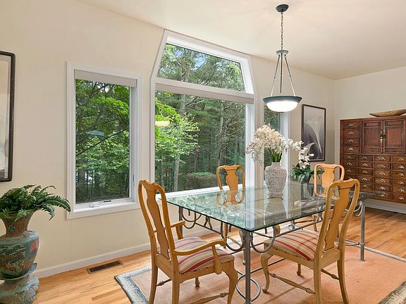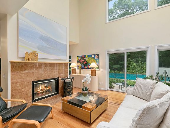 This serene East Hampton home offers peace and privacy on a quiet cul-de-sac in the coveted Northwest Woods. Set on over two acres and surrounded by towering white pines, the property is ideally positioned to enjoy natural light throughout the day.The home features four spacious, sun-filled bedrooms and three full baths. The airy living room boasts a soaring cathedral ceiling, creating an open and inviting atmosphere. A two-car attached garage adds convenience.Outdoors, you'll find beautifully landscaped grounds with mature trees and plantings, a heated pool, and a relaxing hot tubperfect for summer lounging or entertaining.Located just minutes from East Hampton Village and Sag Harbor Village, with easy access to shops, dining, and beaches.