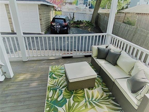 1/2 FEE! Fantastic two bedroom two bath condo with private entrance, hardwood floors, high end appliances, open kitchen living room, big bedrooms with great closet space, in unit laundry, central A/C, two off street parking spots, spacious deck, gas fireplace small dogs welcome, walk to Ashmont station, shops and restaurants.