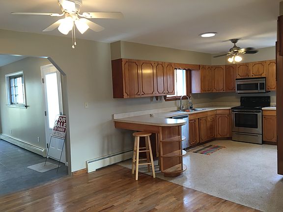 Spacious 3 bedroom 2.5 bath ranch home has large rooms, wood floors lots of windows. Freshly painted ready for you to make it your home. Large master suite with walk in shower and garden tub, lots of closet space. Large open living/dining area. Side and rear doors open to large mudroom area adjacent to a laundry/pantry area. Lots of storage. Newly finished basement houses a one car garage and a large family room with a wood burning fireplace. Covered barbecue area off the side door and nice yard. Large driveway. Located on quiet dead end road just off state highway.