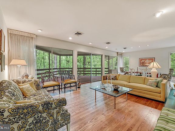 Roomy, mid-century contemporary nestled in the woods on a quiet cul-de-sac. Expansive rear deck overlooks the trees and stream. Lots of glass to bring the outside in. There are rooms galore in this well-maintained two-level home with many updates.~ Perfect for one level living with plenty of bedrooms and space on lower level for family and guests . 4 BR, 3 Ba, 2 bonus rooms. Walk-in closet in first floor Master Bedroom. Two car garage and large driveway accommodate many vehicles.