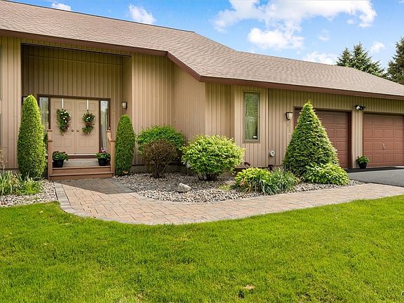 Fall in love with this compelling contemporary! The 2 story great room centers the house and overlooks the magical and private setting. The sunny, open kitchen flows to a dining room and has miles of cupboard space. A huge office with loads of custom bookcases (library, anyone?) makes the perfect work-from-home spot! The first floor primary suite features a walk in closet and more of that back yard view, and upstairs are two more generous bedrooms and a second full bath. Back on the first floor, you'll love the spacious laundry room and the convenient half bath. A full dry basement has 3 rooms for more living space potential! Enjoy this summer grilling on your deck or finding relief from the heat with the home's central air conditioning. Located a quick stroll from a 9 hole golf course or a quick drive to the village of Clinton- you will love the life you make here!