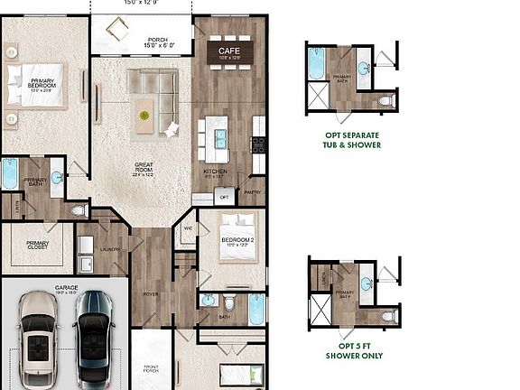 - Double Vanity, Garden Tub/Roman Tub, Main Level Primary, Separate Shower