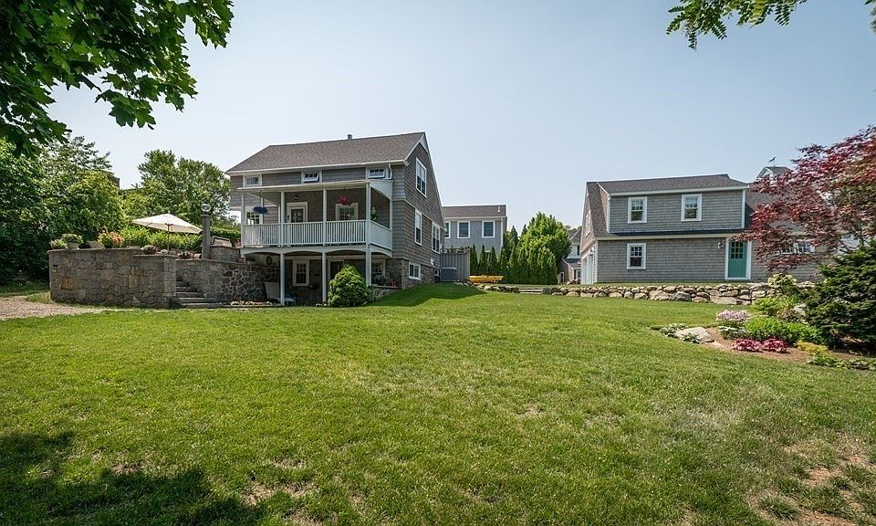 Set amidst a quiet oasis, in close proximity to the beach and downtown, this exquisite shingled cape residence epitomizes refined elegance while effortlessly attending to the desired needs of modern day living. As you enter, the main level illuminates with natural light. The gourmet kitchen boasts high-end appliances and gracefully flows into the dining room with custom built china cabinets. The spacious living room showcases a gas fireplace, two sitting areas, and leads to a magnificent covered deck that overlooks the sprawling lawn with its granite walls and bluestone patios. Retreat to the second floor, which includes the primary bedroom, two additional bedrooms, and a full bath with laundry. The lower level offers a guest room, office, full bath and separate laundry room. Enhancing the versatility of this home, a heated two-car garage includes a guest suite with kitchenette, full bath, laundry and workshop. This gem is located within minutes to a beach and famous downtown Rockport.
