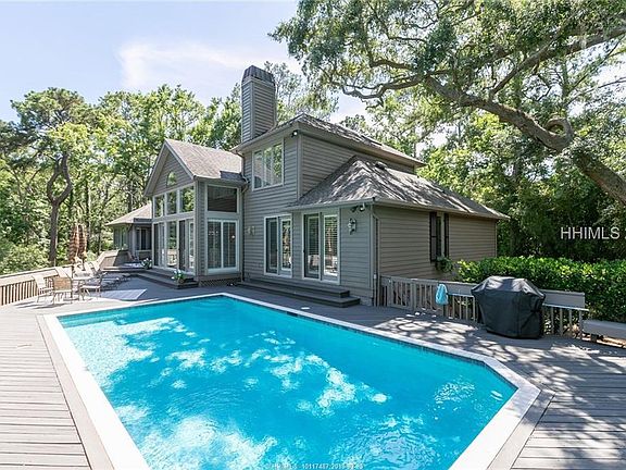 No need to do a thing: this updated Sea Pines home features granite, SS appliances, huge pool filled w/sunlight, freshly painted living/dining room & kitchen cabinets, new carpet throughout, sleeps 14 easily! Additional 1000 sq ft travertine tiled bonus space on ground floor. HVAC all new 2016. Perfect for entertaining. Gorgeous traditional two-story home w/two story windows on RARE nearly 1.2 acre lot! Hard to find this type of privacy & elegance in Sea Pines. Winding drive leads to circular driveway, parking for 10+ cars. Easy bike ride to beach & Harbour Town. Fabulous full-time/second home or profitable rental - grossed over 100k in 2018!