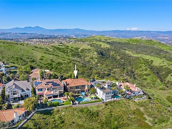 HILLTOP ESTATE WITH PANORAMIC VIEWS OF THE OCEAN, ROLLING HILLS, CITY LIGHTS, SUNSET VIEWS, ENTERTAINERS BACKYARD WITH OVERSIZED SALT WATER POOL, WATERFALL AND SPA, MOVE-IN READY, GATED COMMUNITY, CUL-DE-SAC, SINGLE LOADED STREET, MAIN FLOOR MASTER BEDROOM, 2 MASTER BEDROOMS AND UPGRADED CHEF'S GOURMET KITCHEN. Enjoy breathtaking views of the ocean from the shores of San Diego to the North. This pristine 6 bedroom home is upgraded with new interior and exterior paint, plantation shutters, upgraded hardwood and tumbled travertine floors throughout, lots of windows and high ceilings. Elegant foyer with brand new bronze textured accent wall. Kitchen featuring top of the line appliances including brand new Miele dishwashers and espresso maker, new Sub-Zero's, Chef quality Dacor 6-burner+griddle stove top, Viking microwave, Gaggenau double ovens, granite countertops and butcher-block islands. Open floor plan with spacious dining and great room overlooking the sweeping backyard with views, expansive L-shaped pool and spa, and brand new pavers. Main floor master bedroom leading to the backyard currently being used as the game room. Upstairs master suite features an extended seating area and view deck. Sophisticated office includes upgraded wood paneled walls and ceilings. Electric shades, surround sounds, painted ceilings and brand new sliding doors, are a few of many highlights. Located in the prestigious gated community of Sea Ridge Estates.