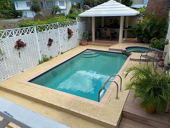 Prestigious Hostos Urb. Ideal for large families or welcome to host familyfriends. With a total of 7 bedrooms 7 bath, garages 2 cars per garage, with a total of 4,727 square feet of housing maintained in excellent condition Total of 9 split units with pool, terraces, gazebo BBQ area. Upstairs: Foyer, Living room and formal dining room, Impeccable Kitchen in pink marble, family that goes out to a terrace overlooking the sea from Punta Rincon, office, laundry, guest bath. Master bedroom with its "en suite" bath, walk-in closet, exit to terrace. The other bedrooms, each with "en suite" bath. The st garage for two cars. Stairs inside and also side entrance exit with a garage for two more cars. two apartments with separate areas each with two bedrooms, a bathroom, gym, individual kitchens, a single laundry. house includes solar water heater and other electric tank heater, 17 kilos electricity generator moves the entire property, security camera system. Three septic tanks..