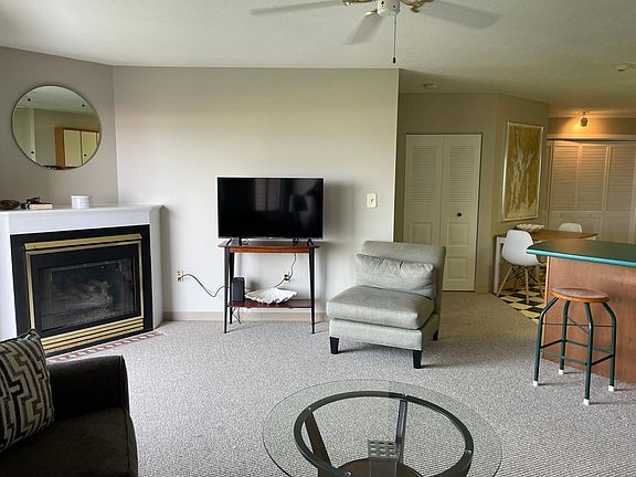 Spend your summer in this beautifully situated one-bedroom condo on Newport's desirable Goat Island. Located in the Capella building, this ground-floor unit offers stunning, unobstructed water views of Narragansett Bay and the Newport Bridge. Relax on your private patio with direct lawn access, perfect for watching boats sail by and enjoying gorgeous sunsets. This furnished condo features a comfortable open floor plan, a natural gas fireplace for cozy evenings, and a Murphy bed with a full-size mattress for accommodating guests. The rent includes utilities, internet, and water. Tenants also have access to a dry storage unit, a laundry room, and ample free parking. Enjoy Goat Island's amenities, including a private pool, tennis courts, a scenic walking trail, and a kayak launch. Downtown Newport is a 20-minute walk or a short water taxi ride away. Available for July and August at $6,300 per month (two-month minimum). Extend your stay into the first two weeks of September for an additional $1,100 per week. Annual rental option is also available. This is a gated community with 24-hour security. No pets and no smoking. Electric, gas, water and wifi are included with a monthly cap to be determined. Subject to approval by the Condo Association. Minimum Lease term is 2 months