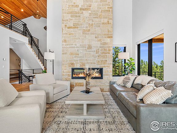 Welcome to 5 Caribou Ridge, an exquisite 2021 luxury mountain home in the desirable Caribou Ridge community. With views on all three floors, take in the continental divide, James Peak, Gold Hill, Sugarloaf Mountain, and the Sleeping Giant mountains from your home. This meticulously maintained property gives you easy access to Denver, Boulder, the Indian Peaks Wilderness Area, Estes Park, and Eldora Ski Resort. Outdoor enthusiasts will hike, fish, bike, ski and off-road right out the back door. Your new home provides the convenience and access of an urban environment within the heart of the Front Range wilderness. Adorned with top-of-the-line finishes and constructed using the latest innovations and technology, this Cornerstone home epitomizes the best of Colorado mountain living. Featuring a double-height main living area, finish off your take-and-bake pizza from Crosscut in your sleek kitchen with loads of storage, then transition to dessert around your two-story stone-surround fireplace. Head out to your spacious deck to soak in the night sky. The main floor owner's suite includes a private south-facing deck, a massive 5-piece spa bathroom with a freestanding tub and two-person steam shower, plus walk-in closet. This home offers rare enterprise-grade fiber with 1Gbps upload-download speeds, city water and sewer, buried gas-electric, owned solar, natural gas generator, automatic window shades, trash service, and a fire hydrant in the front yard. The lower level has 2022 matching wide-plank white oak floors throughout. The garage door is brand new. From your huge concrete patio, take advantage of Colorado's 300+ days of sunshine, then toddle down to charming Nederland's boutiques, restaurants, craft breweries, and two popular music festivals.