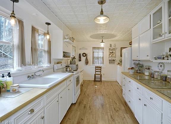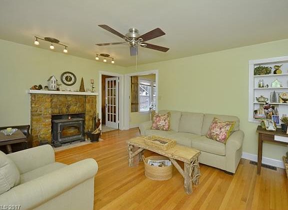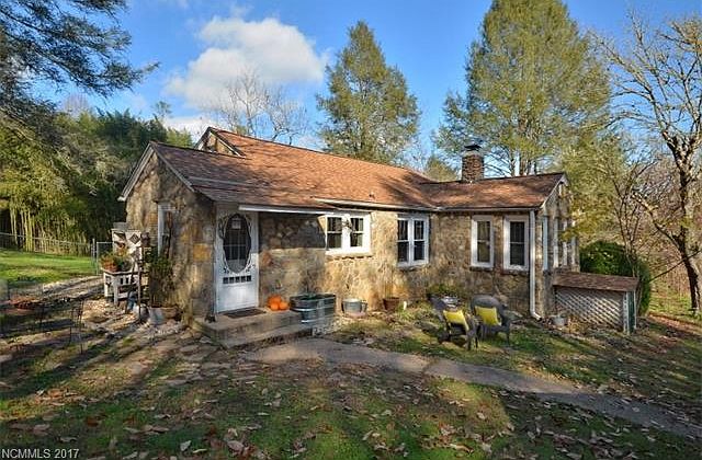 Charming 1940's era stone cottage on nearly two acres a short distance from downtown Brevard largely refreshed in 2006. Country charm plus modern conveniences such as large double garage with studio/workshop, newer roof, newer well pump, vinyl-tilt windows, new kitchen laminate floors, and hdwood floors. Small creek on property. Plenty of additional parking. Fenced acreage for pets, chickens, playset. Gardener's delight. Only 2 miles to Bracken Mtn Preserve trails and Brevard Music Center.