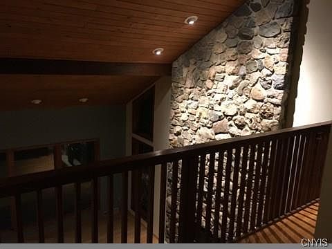 6,000 total square feet of finished space up & down. Incredible 3.68 acre lot on a dead end street, tons of privacy, gorgeous gardens. Truly feels like country living only minutes from town, 690, churches, schools, shopping and restaurants. The valuted ceilings in the livingroom offer so much natural light and illuminates the floor to ceiling fireplace. Beautiful kitchen has another fireplace and granite tops, also offers a dbl oven for family dinners. Large dining room has sliders that lead to a huge deck and glass enclosed atrium with a hot tub!!! Master suite overlooks the backyard w/ sliders that lead to a balcony. Also has a full bath w/ jucuzzi tub. Or relax in the full basement next to the 3rd fireplace, enjoy a cocktail at the wet bar or hop on the treadmill in the exercise room.
