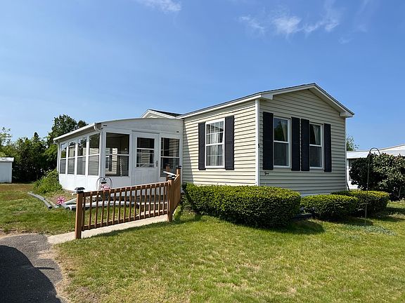 **MULTIPLE OFFER DEADLINE 5/23 7PM** Expect to be impressed by this new offering at Hampden Village! This home has WOW factor for sure, tons of natural light, super location - backed up to farm land, newer roof and heating system and an affordable lot fee at just 425.00/month. This lovely 2 bedroom 1.5 bath home is sure to please! The front bedroom has a half bath while the rear bedroom is just around the corner from the nice sized full bath with easy access step in shower. With the kitchen, living, dining areas in the middle of the home entertaining here would be a breeze! Hampden Village is a retirement community for persons age 55 or older. The buyer is responsible for obtaining park approval. The monthly lot fee includes taxes, water, trash pickup and use of the community clubhouse, dog park and heated inground pool! Septic and inground oil tanks are the responsibility of the park! Schedule your showing today!