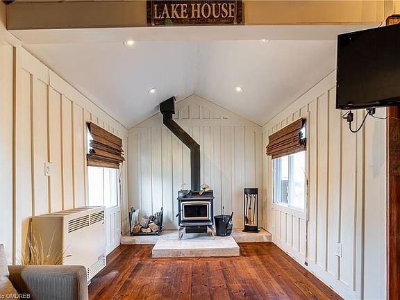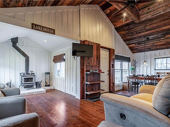 Welcome to your new home away from home this 3 season cottage with view of the Lake is perfect for your weekend getaways or easily turn it into a 4 season cottage and make it your forever home. This two bedroom cottage offers a loft that can easily be used as a play area or 3rd sleeping area for guest. The open concept living/dining and kitchen have been elegantly renovated, look at the attention to details, perfect lighting, appliances and gorgeous backsplash. The master bedroom has a feature wall and the same stunning lighting as seen throughout this great cottage. The 3 piece bathroom was not left out the attention to detail and design flows into the bathroom. Step outside where you will find a deck that is perfect for entertaining and a large backyard. Property is winterized but no water in the winter, buyer had a quote for a cistern at $6,000-7,000 buyer to verify.