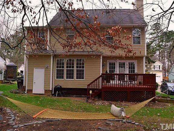 Only thing missing is you! Paved trails, lakes, pool, clubhouse, and playground in this popular neighborhood. Stylish, move-in ready, well maintained, 2-story home with peaceful, wooded backyard. Lounge on the deck and enjoy the wildlife. Eat in the breakfast room or separate dining room. Great master suite with vaulted ceiling, double door entry to bath, private dressing area, and large WI closet. New HVAC! Convenient to RTP, SP Mall, I-40, Duke, NCCU, and UNC. Live in this home and you can have it ALL!