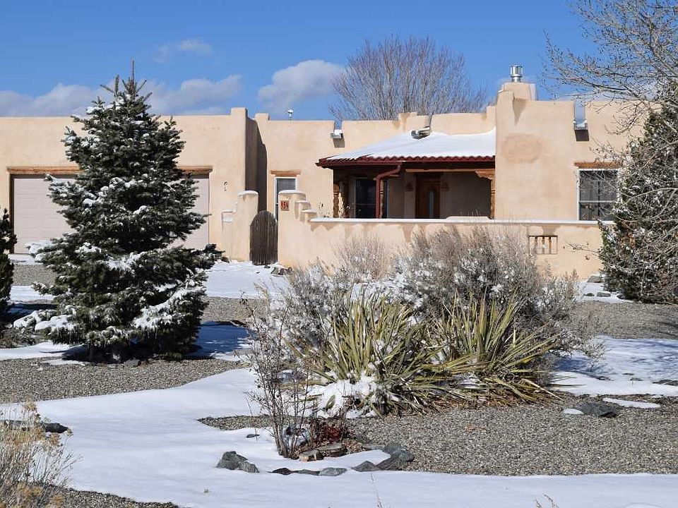 Beautiful 3-bedroom/2-bath home just 10 minutes from Taos. Built in 2006, this well-maintained, immaculate home looks like new! Open floor plan with lots of light. Living room features gas insert fireplace, and opens to back yard patio. Nice kitchen with countertops, stainless steel appliances, ample cabinetry. Master suite includes large bedroom, walk-in closet, luxurious bath with jetted tub & separate shower stall. Two bedrooms adjacent to a bathroom--it would make a good space for a home-based business. Back yard offers plenty of nice outdoor living space, with covered porch and fine mountain views. This Pueblo style home features attached 2 car garage. Property is connected to natural gas, shared well and sits on 1 acre. Conveniently located between Taos Ski Valley and Town of Taos.