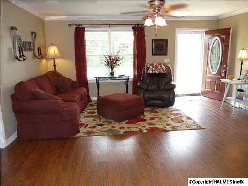 Immaculate well-maintained vinyl sided home features all tile or laminate flooring, freshly painted interior & new water heater. Entire back yard is privacy fenced. Small deck on back plus patio. Storage building has electric power. Very charming move-into ready home. South Lincoln County TN for easy commute to Huntsville.