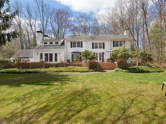 Elegant brick-front Colonial w endearing charm set back beautifully on a quiet, tree-lined cul-de-sac in a coveted Mendham Twp estate neighborhood. 12 rooms-4 bedrooms, 3 full and 2 half baths, 2 fire places and brimming with special design features.This home offers 3, 700 sq ft of commodious living space on two sprawling floors, plus a smartly finished lower level w full bath and au pair guest suite. Two-car attached garage plus one-car detached garage w private, paved circular driveway and ample parking. Relaxing multi-tiered wood deck w hot tub, sparkling in-ground swimming pool w exquisite pool house, and a flat rear yard with multiple play areas-all 3 elements combine to create a private backyard oasis. Professionally landscaped 7.5 acres with woodlands on 3 sides plus a front yard w rustic apron ensures privacy.