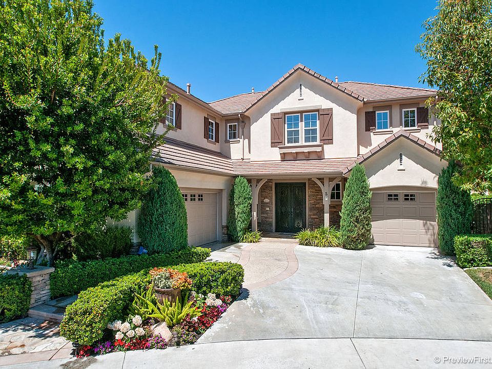 Beautiful, upgraded 5BR /4.5BA, Bonus Room pool home, located on the cul de sac in the desirable Glenmere tract. Enter through the custom iron doors and notice the formal entry with dramatic 2 story foyer, travertine floors, custom paint, designer details all welcoming you into a warm and inviting living room and dining room. The family room with fireplace and surround sound, opens to the gourmet kitchen that is highlighted by a large center island. Attention to to detail was covered in the kitchen remodel with granite counters, stone accents, stainless appliances, stove top pot filler, built in Meile coffee maker, down to the new sink and faucet. It is truly the perfect kitchen for entertaining. Downstairs you will find a full bedroom with on suite bath. Upstairs a private master suite with fabulous closet, customized by California Closets. There are 3 additional bedrooms one with private bath, all with custom closets. Don't miss the fun bonus room at the end of the hall. The private backyard with pool, spa, BBQ, and fireplace, along with covered patio offers a great place to unwind and enjoy outdoor entertaining. This very special home is located in highly sought after gated community of Coto De Caza with two Trent Jones Jr. designed golf courses.
