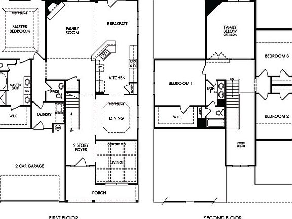 The main-level owner's suite includes a trey ceiling, five-piece bath and walk-in closet. A two-story family room and foyer offer a sense of spaciousness. Upstairs, you'll find three additional bedrooms
