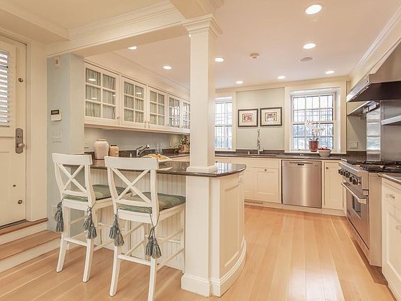 - Kit Dscrp: Flooring - Hardwood, Countertops - Stone/Granite/Solid, Breakfast Bar / Nook, Stainless Steel Appliances, Recessed Lighting, Crown Molding