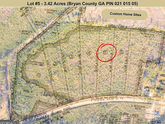 Cleared, Custom Home Site Lot #5 on 3.42 acres in the Ellabell Area with 173' Road Frontage. Large, Beautiful Lot with no Wetland and tucked away off of Main Roads. Custom Builder in Place with many Designs to choose from, no Mobile Homes allowed. Homes Sites are located between Hwy 280 and Hwy 204, less than 7 Miles to I-16 & Hwy 280 Interchange, Less than 9 Miles to Hwy 80, Less than One Mile to Hwy 204, 20 Minutes to Pooler for Businesses, Shopping, Dining & Airport, 10 Minutes to Pembroke and 11 Miles to Ft. Stewart (Pembroke Gate).