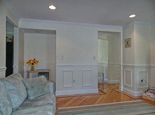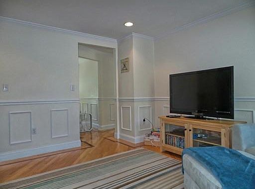 Lovely 2nd and 3rd floor Condominium unit in building that was totally renovated to the studs in 2008. Gorgeous oak HW flooring with mahogany inlay throughout, bright spacious kitchen features granite counters, stainless steel appliances, short walk to bus, square & park. There are a full 3 bedrooms, the laundry area is off the Kitchen, and the unit has 1488 sq ft.....the size of a mid size colonial. The location is close to schools and public transportation. There are 2 deeded parking spaces and the condo fee is only $200/month.