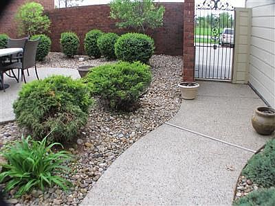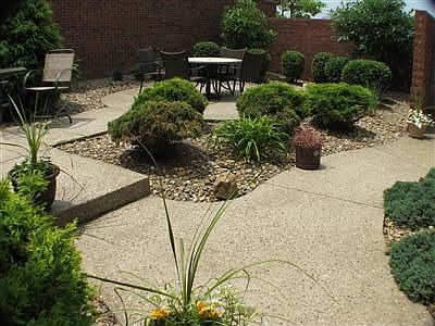 Over 2,300 square feet! This spacious, well built patio home offers the perfect living arrangement. Outside, enjoy the professionally landscaped patio with trees, plants, rocks & privacy. Inside, a chef's kitchen welcomes you with hardwood flooring, built in oven & microwave, cooking island, drawers & cabinets galore, closet pantry, built-in desk, & amazing counter space. Kitchen overlooks beautiful patio. The great room offers a fireplace surrounded by wall to wall custom shelves & cabinets. Numerous windows make this patio home bright & cheery along with custom vertical & faux wood blinds throughout. Huge bedrooms. Tiled baths. The master bath has a jetted tub with separate shower, double sinks, & skylight. Separate laundry room with washer/dryer that stay. Washer 2 years old. New garage door '10. New paint inside/out. Feel safe with your own intercom/security gate. Great neighbors found in this small community. Unique style & setting. 5 min to Veteran's Pkwy & 10 min to Lsvl.