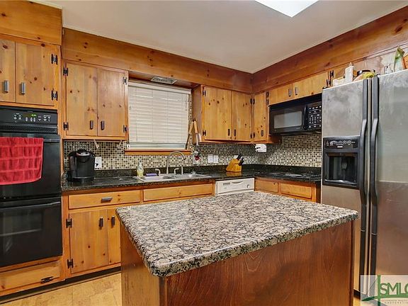 Many updates in this home that has surprising rooms and square footage. This could be a 4 or 5 bedroom home. Dining room has closet and is separate room that could be used as BR. Flex room has no closet but perfect space for a 5th bedroom OR you could have a separate office or famroom. Easy flow of kitchen with island offers double ovens, cooktop, microwave, and dishwasher. Master suite is private and located at rear of home, offering a great split floorplan situation - especially if you need space from family members or long term guests. Also, could offer a great room mate situation since bedrooms are on opposite ends of home. Master also offers a walk in (through) closet, master bathroom, and a private entrance to the screened porch. Enjoy your private backyard oasis with large shade tree. Fenced yard.Unique wood ceilings throughout. Parquet and laminate flooring. Lots of charm! Minutes from Truman Parkway, Georgia Southern, and less than 3 miles to the Coffee Bluff Marina.