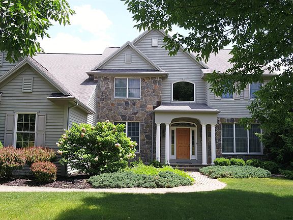 Stunning Hudson Valley views from this Custom, Marini-built Luxury Home in desirable East Hills! Gourmet "great room" kitchen w/granite, stainless appliances, island w/prep sink, wet bar, wine & beverage coolers. Screened/open porches. Pocket doors lead to sun-drenched family room. Two-story foyer, formal living room, library w/custom cabinetry. Upstairs, a huge master bedroom w/walk-in closet & master bath w/jetted tub. Three add'l. bedrooms, 2 full baths & a large laundry/craft room complete the 2nd floor. Features hardwood floors, 9-ft ceilings, 2 staircases, custom wood molding & finished walk-out basement w/half-bath. Simply gorgeous! Central air, vacuum, intercom/music & alarm systems. 3-Car garage & sprinkler. Optional interior stair lift. Listing agent related to sellers.