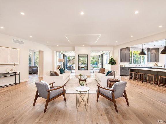 Meticulous attention to detail and custom designer finishes commingle within this elegant 5 bed, 7 bath Normal Bechtold home. Established on an immense corner lot and completely renovated, this home presents modern living in an ideal neighborhood. Inside, an open floor plan dazzles w/ wide-plank oak floors, high ceilings, and ample sunlight from every angle. A formal living room adjoins a vast chef's kitchen w/ a butler's pantry, stainless steel appliances and stylish cabinetry immersed in sunshine from overhead skylights. With tongue-in-groove ceilings overhead and a full glass NanaWall, a formal dining room escorts residents into a sublime indoor-outdoor lifestyle. The main-level primary suite boasts a gorgeous fire feature, indulgent 5 piece bath, and extravagant closet space customizable to the new owner's taste. Downstairs, a lower level invites intimate soirees w/ a wet bar and ample space for entertainment. Natural bliss is found in a surrounding outdoor escape embellished w/ 2 ponds and a decadent zen gazebo. Modern main floor living in Cherry Hills with form, function, and balance.