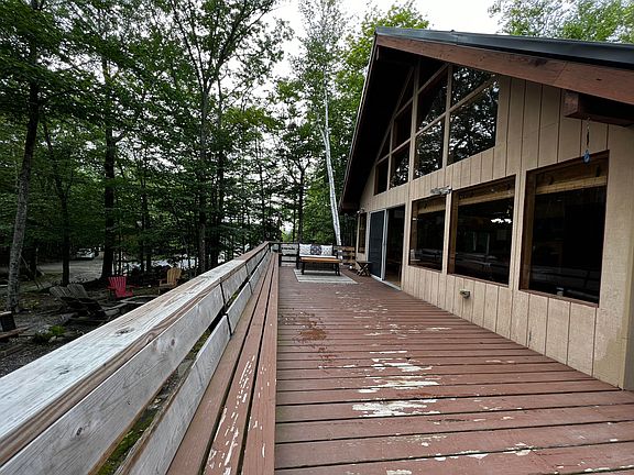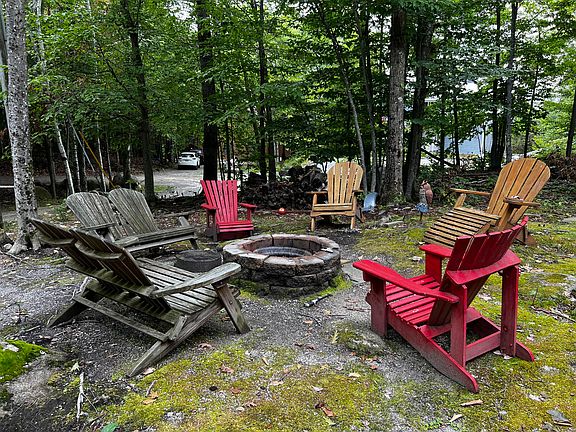 Enjoy the spacious feel of this updated chalet style cabin on a quiet cul de sac near the community center and golf course. Plenty of natural light from the wall of windows and sliders off the front side of the house. This fully furnished home includes a living/dining area, kitchen and 2 bedrooms on the first floor, with a large loft upstairs perfect for a plenty of extra sleeping space. The living room boasts a stone hearth with a retro Preway fireplace, but that is only one of the heat sources. There is also electric baseboard heat and a recently added HVAC wall unit which provides both heating and cooling. Outside you will enjoy your large wrap around deck perfect for entertaining. Also included is the shed for all of your outdoor tools/toys. In the evening relax by the firepit right off of your deck. Take a hike on the trail that starts right next door. Come to our little resort island community, turn the key, unpack your bags and get right to enjoying all that Frye Island has to offer!
