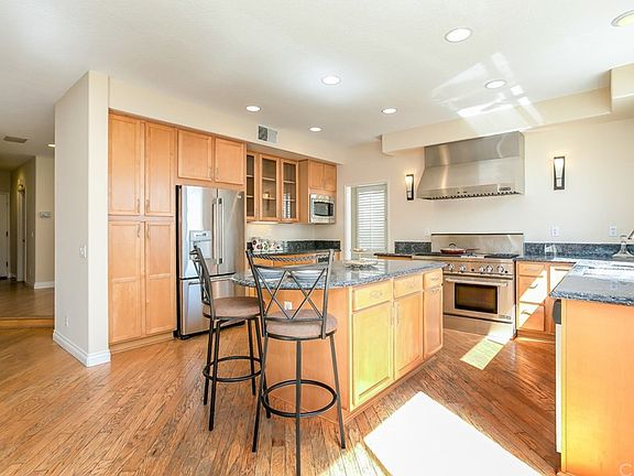 PRICED TO SELL!! This beautiful Mediterranean style home is nestled in the charming hillside community of Foothill Ranch. Located on a single loaded Cul de sac, this home features 5 bedrooms (one on the main floor), 3 baths, and a 3 car garage.The double door entry leads you into a living room with vaulted cathedral ceilings and wall of windows that make it light, bright and airy. Large windows throughout the home, capture the gorgeous mountain views perfectly. The open floor plan and layout makes it a great place for family gatherings. The gourmet kitchen has granite counter tops and stainless steel appliances, including a Jenn-Air six burner stove, hood, and a wine cooler! The family room has a cozy fireplace for your enjoyment! The home has plantation shutters and recessed lighting on the main floor. The second floor has 3 bedrooms + a bonus room ( can easily be converted into a bedroom), including a spacious master suite with a private master bathroom and walk-in closet. Home has been freshly painted in neutral color. Backyard is very private and has a pergola. This home comes with an additional bonus, as it is equipped with High Amp Solar Panels that will take a huge bite off your monthly bills! Award wining schools, library, parks, movie theaters, restaurants, and shopping centers are all close by. Minutes away is Whiting Ranch Wilderness Park a biking and hiking paradise!