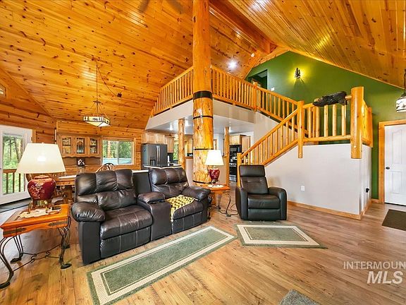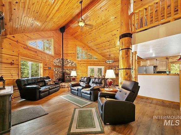 Absolutely stunning Duquette Pines home set in a cul-de-sac on over 2 extraordinary acres. New laminate flooring spans the entertaining spaces and the vaulted great room features breathtaking floor to ceiling tongue and groove as well as massive log accents. Spectacular views from the deck and featuring new flooring throughout as well as granite kitchen counters, toilets, vanities, plumbing fixtures, double doors, ceiling fans, wood shutters, interior paint and complete exterior stain. The upstairs hosts a loft area and the generous primary suite with a beautiful bathroom and large walk-in closet. Downstairs you will find a large entertainment area with a full bathroom, lots of storage and the giant shop area with its own HVAC system. Duquette Pines is a private gated community set in an incredible location with roads that are well maintained throughout the entire year for easy access. The home is also generator ready!