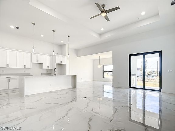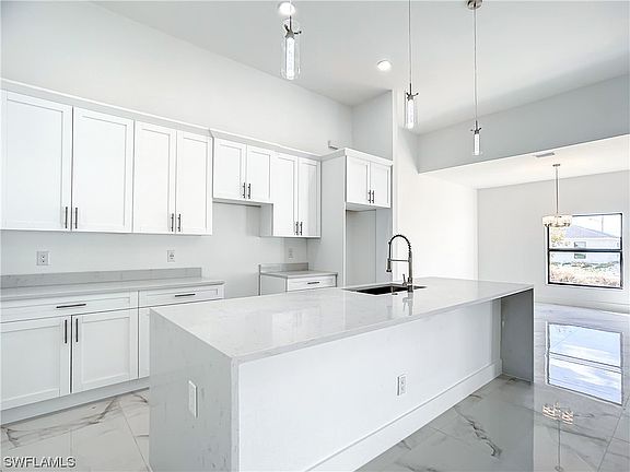 Welcome to your dream home in the heart of Cape Coral! This stunning 4-bedroom, 2-bathroom residence embodies the epitome of modern living, featuring a spacious open floor plan that seamlessly blends style and functionality. A beautiful kitchen that brings with it sleek quartz countertops and is equipped with top-of-the-line stainless steel appliances. The master bedroom boasts ample space and two walk-in closets that lead into the ensuite bathroom with a dual sink vanity that adds a touch of elegance and convenience to your daily routine. The lanai features a granite counter space equipped with a sink ready for all your hosting needs. Don't miss the opportunity to make this house your home. Schedule a showing today and experience the comfort and style that awaits you in this Cape Coral gem.