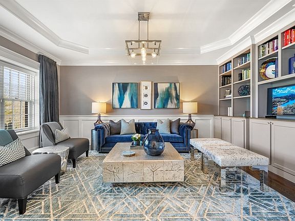 Luxury defined! Custom design and high-end finishes complete every room creating an atmosphere of sophistication and comfort. As you step through the front door you are greeted by an impressive foyer adorned with intricate millwork and gleaming hardwood floors that flow seamlessly throughout the home. The expansive living spaces are bathed in natural light, with picturesque views of the surrounding grounds. No detail has been spared. The gourmet kitchen offers custom cabinetry, high-end appliances, grand center island and stunning dining area leading to a sun filled family room. The adjacent dining area is perfect for hosting intimate gatherings or grand dinner parties. Be prepared to be mesmerized by the resort-style amenities that await you outside. The chic pool is surrounded by lush landscaping, multiple seating areas perfect for lounging in the sun or entertaining guests. Impeccable design, luxurious amenities in an idyllic setting make this the epitome of upscale living.