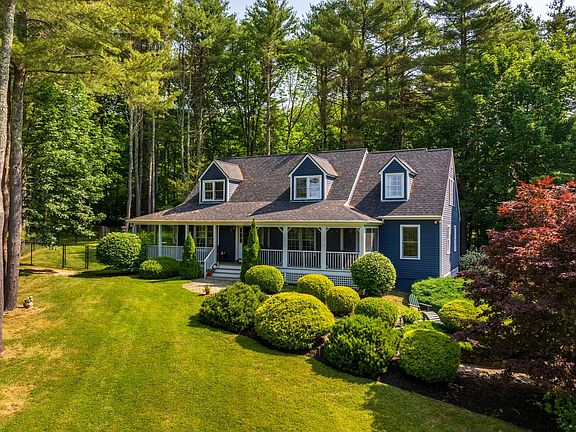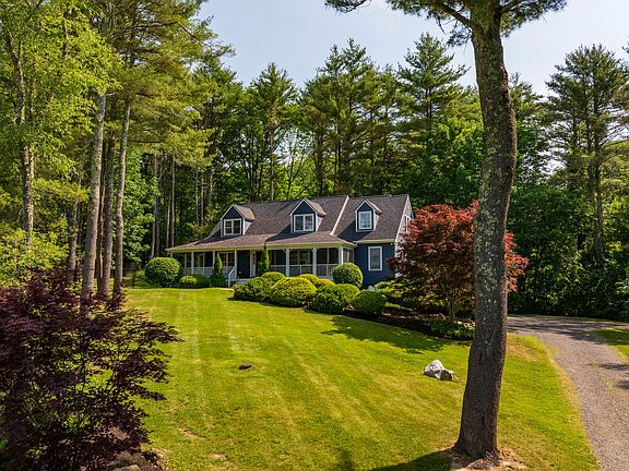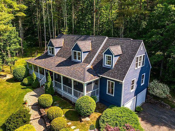 Meandering up the winding drive past the open field, farmland and waterfall feature you'll be captivated by this meticulously maintained three bedroom home. Thoughtfully placed on a 4.9 acre lot to provide ample privacy within a neighborhood setting sits a handsome cape with wrap around front porch. Welcome your guests into the open concept first floor living area with hardwood floors flowing seamlessly throughout. Quartz countertops, gas cooking stove, tiled backsplash all tie together with the rich colored oak floors. A formal dining room is adjacent to the kitchen and just off of the living room. With built-ins, a gas fireplace and crown molding - retreat to the great room for that sense of calm. The large three season screen room off of the great room is the perfect spot to extend your living space, dine al fresco or nap listening to the breeze through the pines. Upstairs the large primary bedroom with a multitude of windows provides amazing natural light throughout as well as a walk-in closet and private bathroom. Two more large, comfortable bedrooms and another full bath complete the second floor. Don't miss out on the chance to make this inviting property your own and experience the idyllic charm of coastal living.